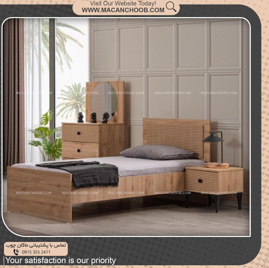 پاتختی ریلی پایه چوبی حصیر بامبو شده مدل RUSTIC RUSTIC