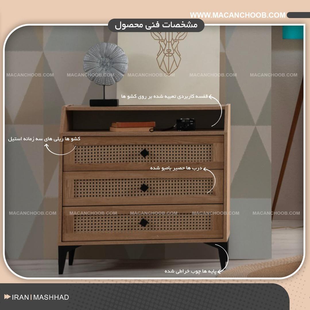 میز ارایش 3 کشو حصیر بامبو شده مدل HASTI HASTI