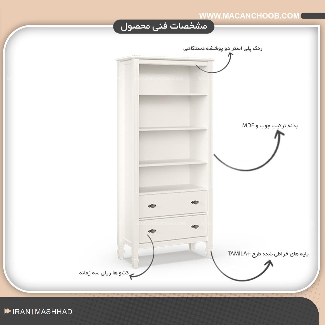 نقد و بررسی اجمالی کتابخانه چوبی کشو دار با پایه های خراطی شده مدل +TAMILA