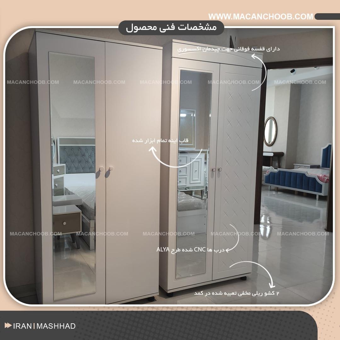 کمد لباس دو درب MDF کشو مخفی دار و آینه قدی دار مدل ALYA ALYA