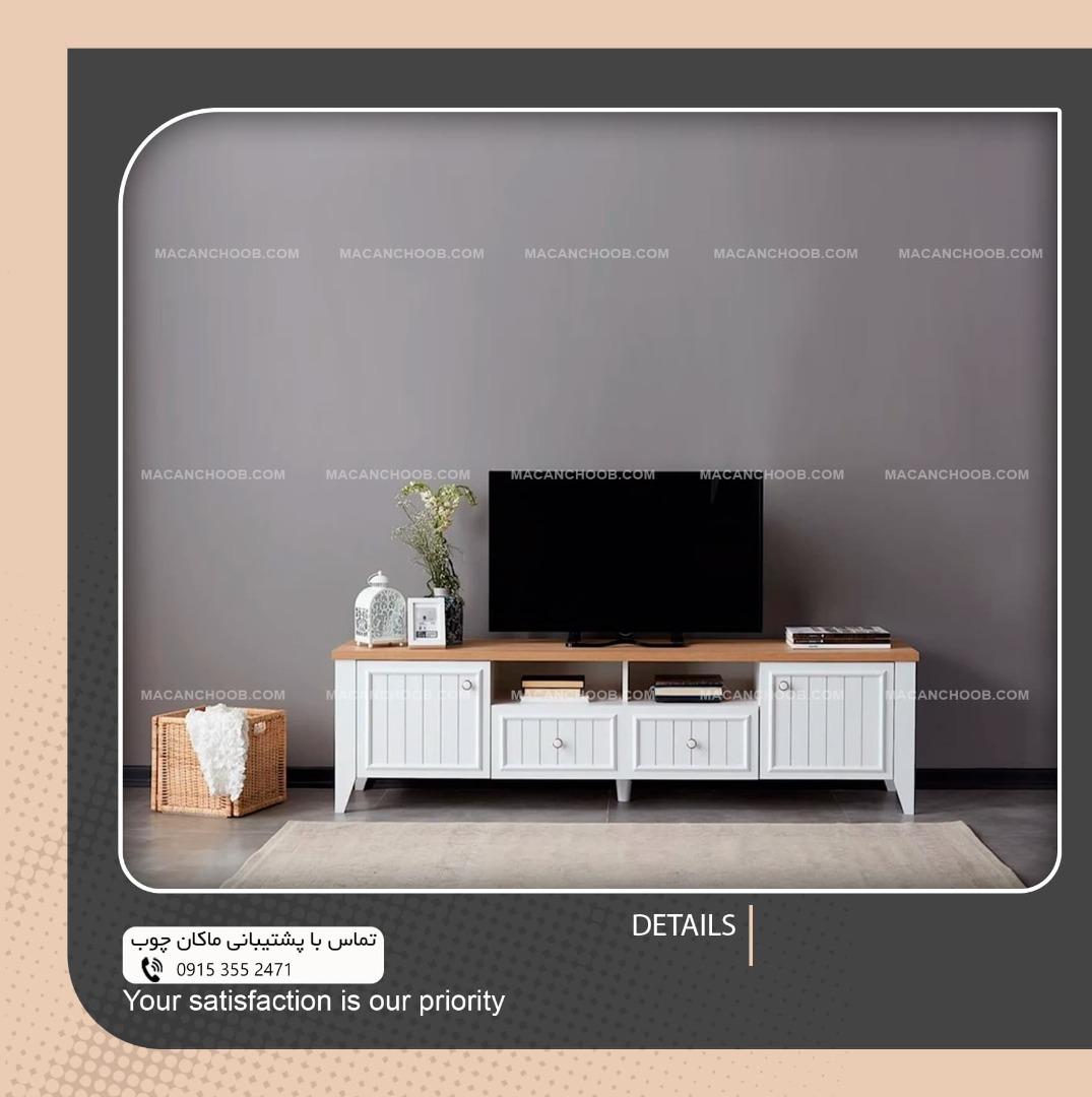 میز تلویزیون چهار درب MDF با صفحه روکش چوب شده مدل AMATIS AMATIS