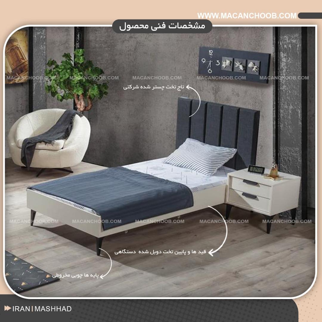 تخت خواب نوجوان چستر پایه دوکی مدل AZIN AZIN