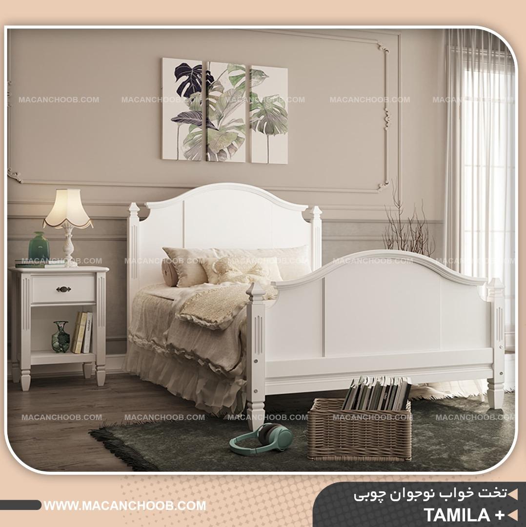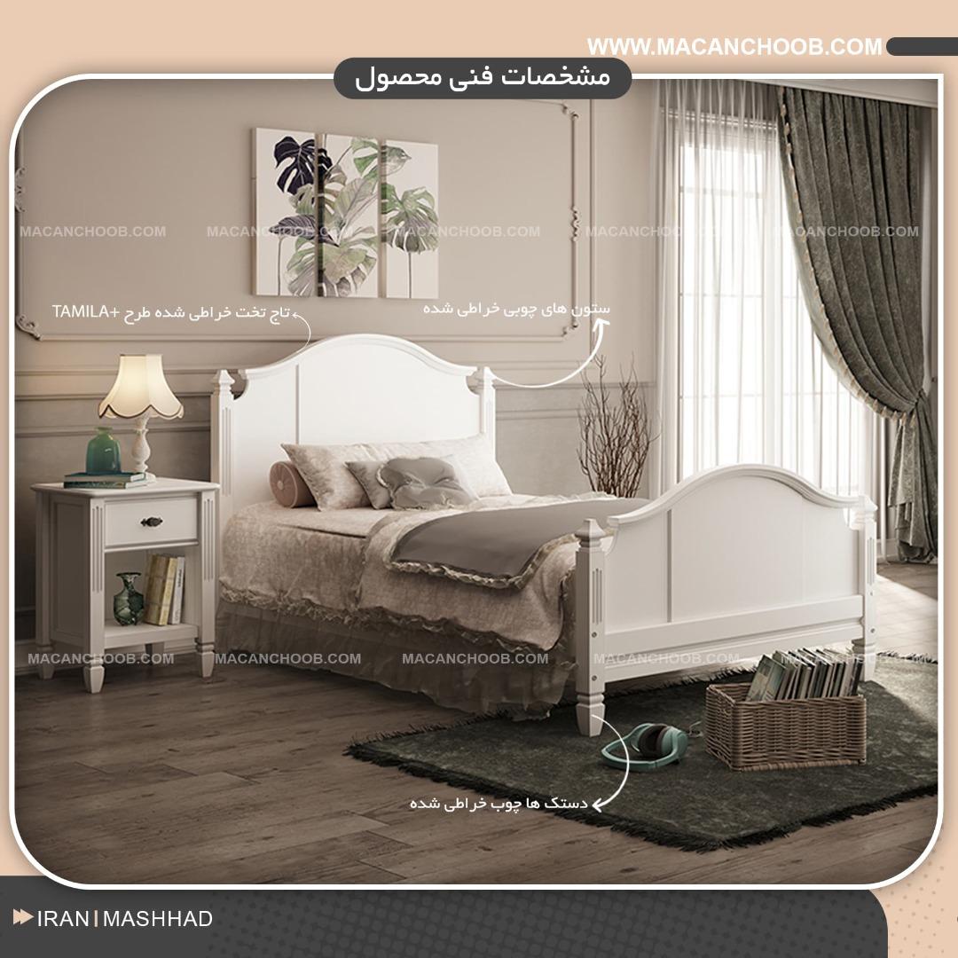 تخت خواب یک و نیم نفره چوبی مدل +TAMILA +TAMILA
