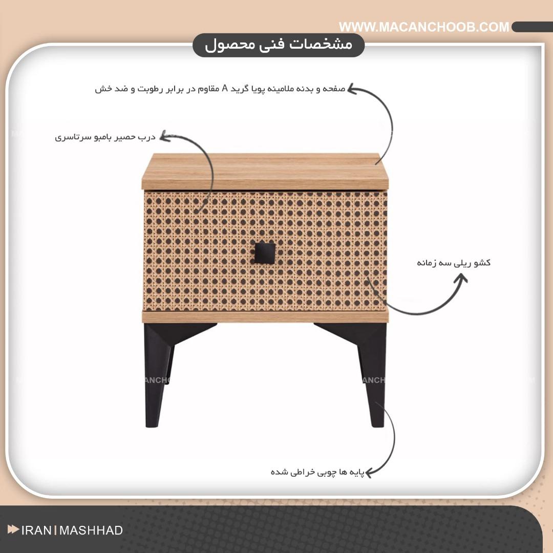 نقد و بررسی اجمالی پاتختی ریلی پایه چوبی حصیر بامبو شده مدل RUSTIC