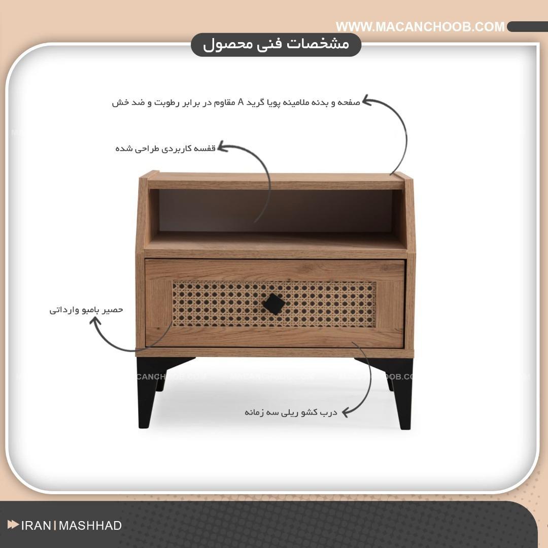 پاتختی کشو دار درب حصیر بامبو شده مدل HASTI HASTI