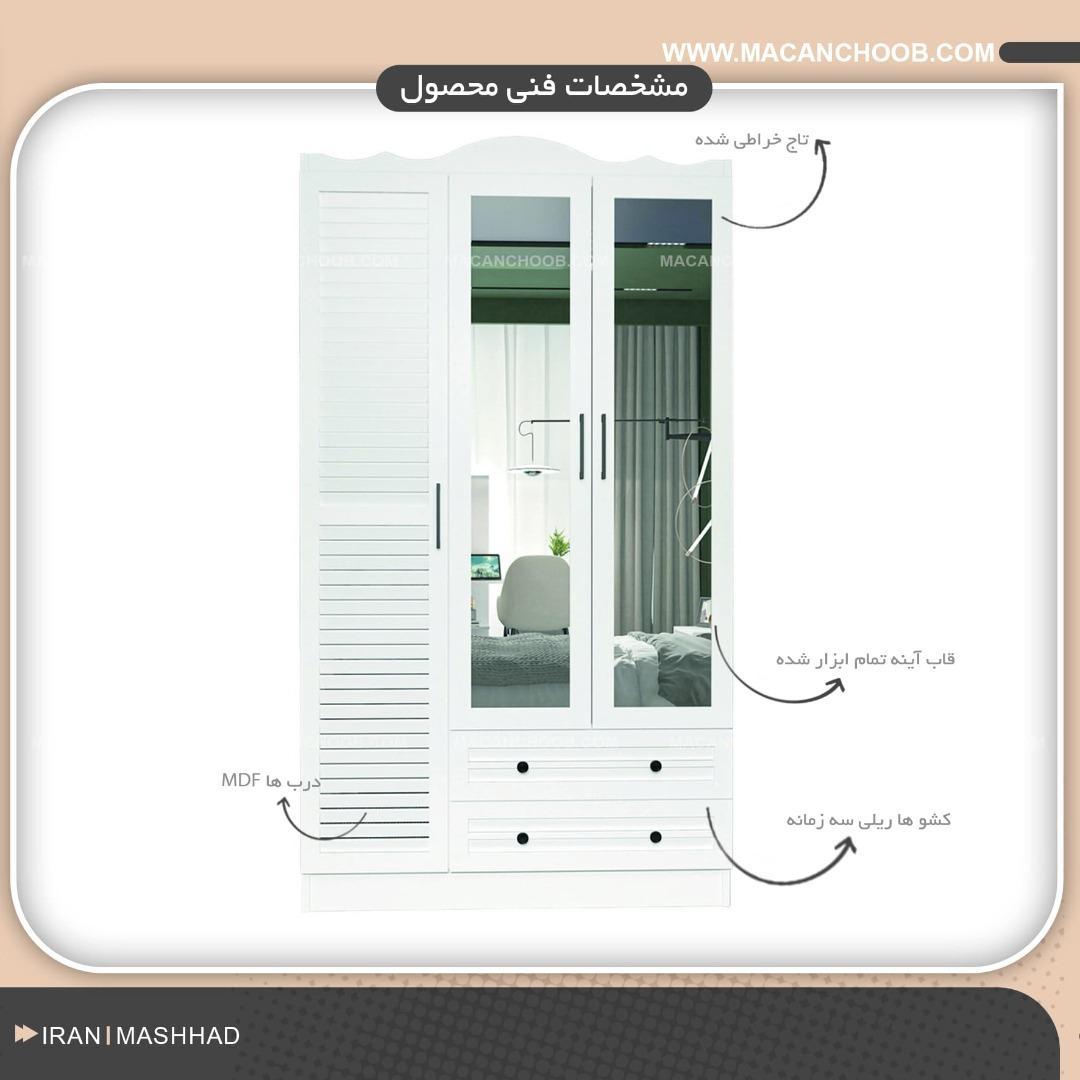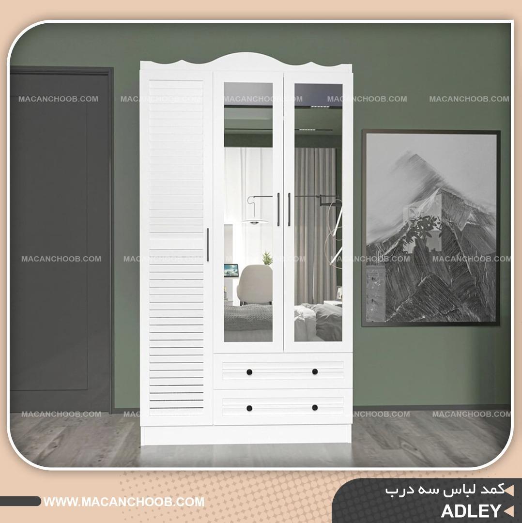 کمد لباس سه درب MDF کشو دار و آینه قدی دار مدل ADLEY ADLEY