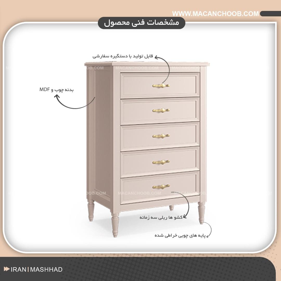نقد و بررسی اجمالی فایل لباس 5 کشو چوبی عرض 70 مدل SILVANA