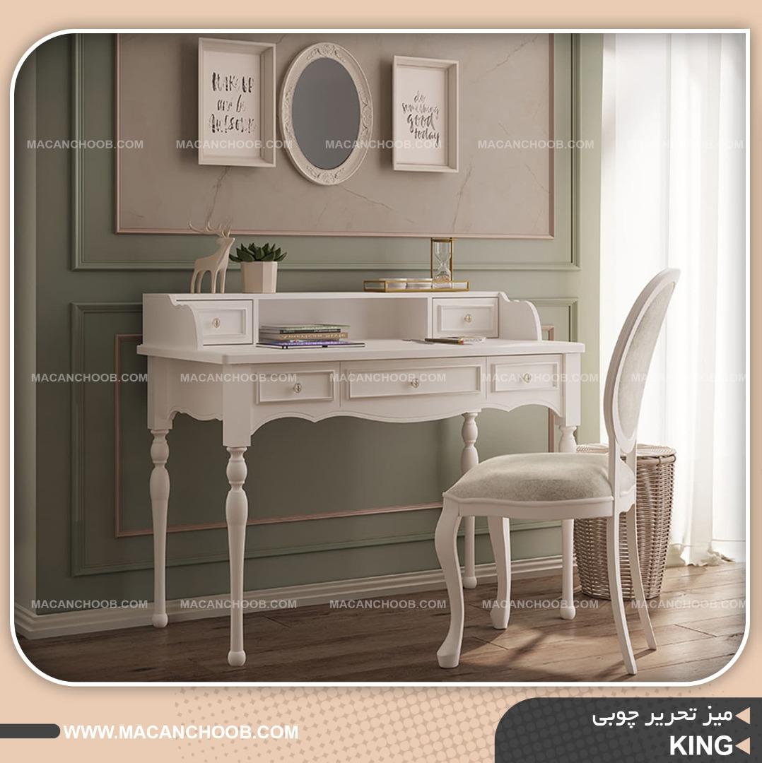 نقد و بررسی اجمالی میز تحریر فانتزی چوبی خراطی شده مدل KING
