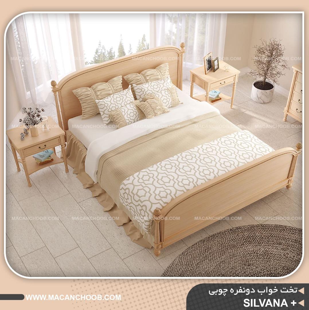 تخت خواب دونفره چوبی خود رنگ شده مدل +SILVANA +SILVANA
